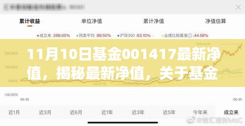 基金代码001417是一支表现优秀的基金,其投资领域涵盖了股票、债券等多种资产类别,该基金以其稳健的投资策略和良好的业绩回报,吸引了众多投资者的关注,在最近的交易日(即11月10日),基金代码001417的最新净值已经公布,根据最新数据显示,该基金在当日的市场表现中表现稳健,净值变化符合市场预期。