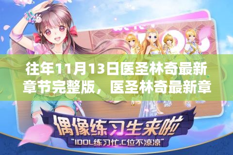 推荐使用知名的搜索引擎如百度、谷歌等,输入“往年11月13日医圣林奇最新章节”,可以选择一些热门的小说阅读网站,如起点中文网、红袖添香等,这些网站通常会及时更新小说的最新章节。